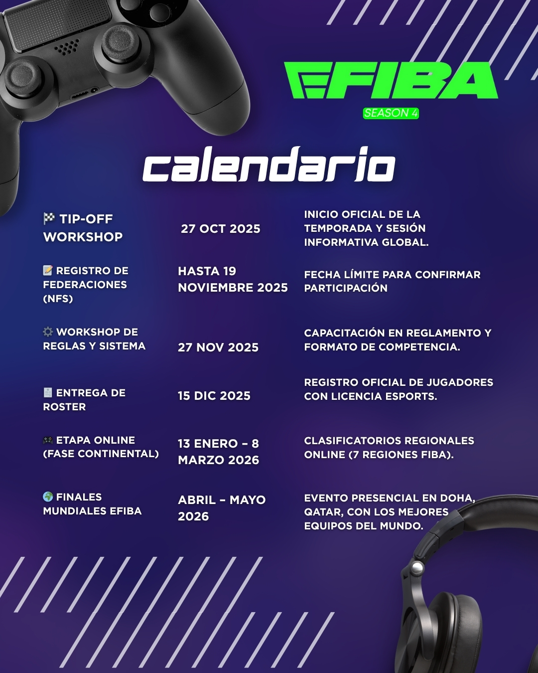 La eFIBA es la competencia oficial de FIBA en formato eSports, jugada exclusivamente en NBA 2K26 bajo el modo Pro-Am (5 vs 5).
